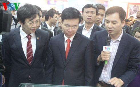 Ông Võ Văn Thưởng cùng các đại biểu thăm khu trưng bày của Đài TNVN