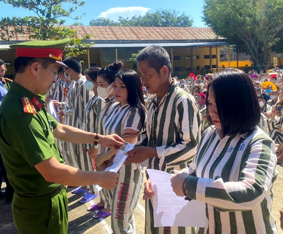 Đại tá Hồ Sỹ Lưu, Giám thị Trại giam Bình Điền trao Quyết định đặc xá cho các phạm nhân