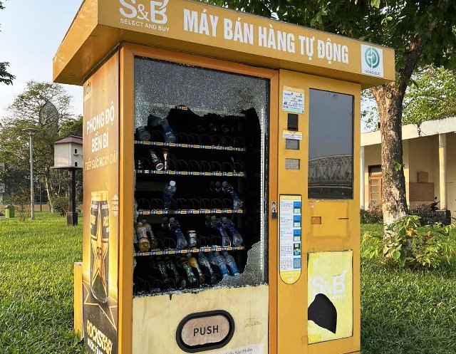 1 trong 2 máy bán hàng tự động bị các đối tượng đập phá để lấy trộm