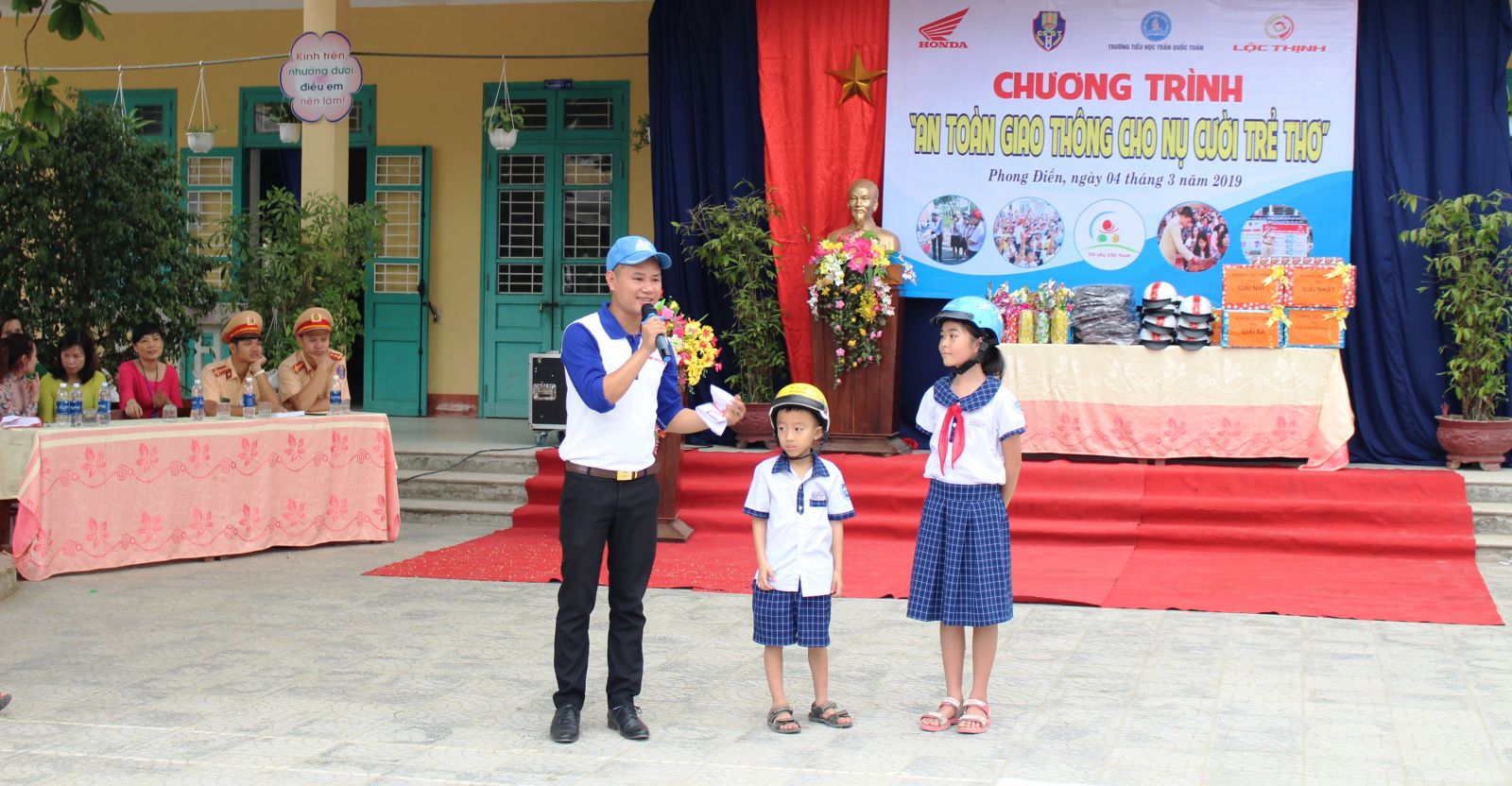 HNN.VN - Sáng 4/3, tại Trường tiểu học Trần Quốc Toản (Phong Điền), Ban An toàn giao thông tỉnh phối hợp với Công ty Honda Lộc Thịnh chi nhánh huyện Phong Điền tổ chức Chương trình “An toàn giao thông cho nụ cười trẻ thơ” với sự tham gia của các em học sinh và toàn thể cán bộ, giáo viên của Trường tiểu học Trần Quốc Toản.