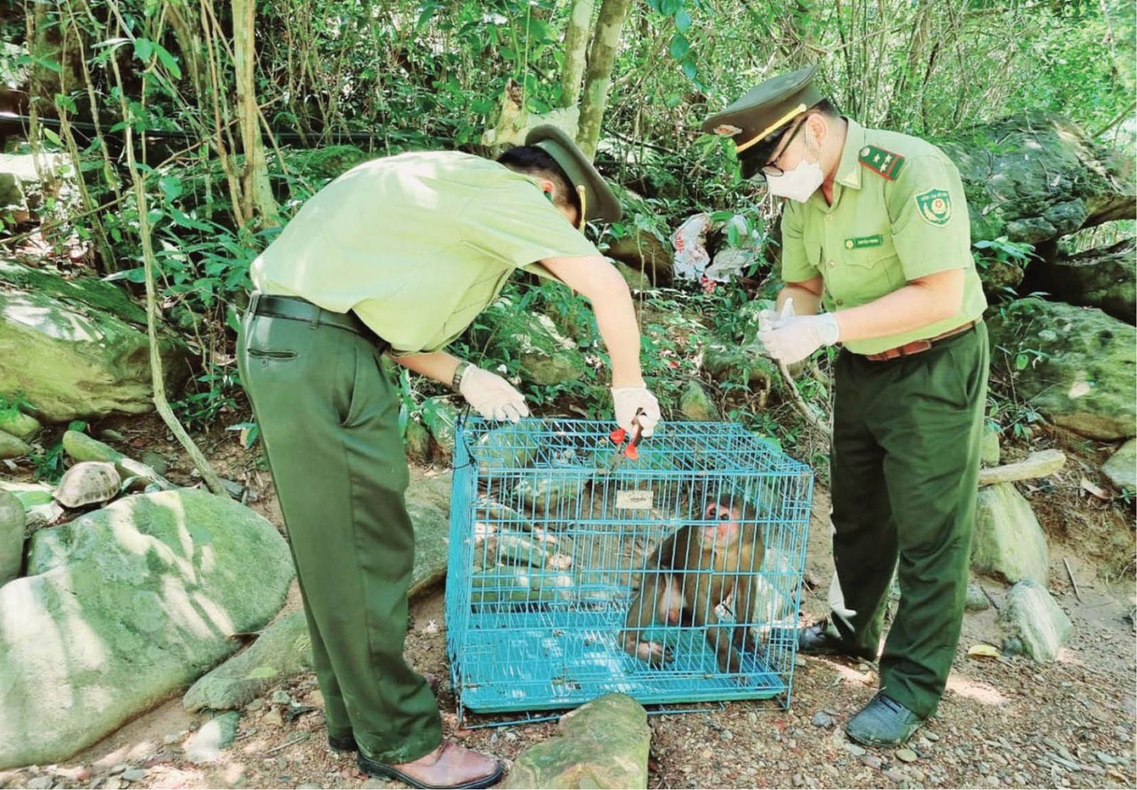 Hạt Kiểm lâm TP. Huế tiếp nhận một cá thể rùa núi Vàng (Indotestudo elongata), nặng 1kg do ông Mai Văn Tân, trú tại phường Trường An (TP. Huế) trình báo; một cá thể khỉ đuôi dài (Macaca fascicularis), nặng 3kg do các sư thầy ở chùa Linh Mụ trình báo và một cá thể khỉ mặt đỏ (Macaca arctoides), nặng 7kg do ông Trần Hữu Vũ, trú tại phường Kim Long (TP. Huế) giao nộp. Tại A Lưới, đơn vị kiểm lâm cũng tiếp nhận từ bà Nguyễn Thị Lành trú tại thôn Pi Ây 2, xã Quảng Nhâm một cá thể rùa hộp trán vàng miền Trung (Cuora bourreti), trọng lượng 1kg.