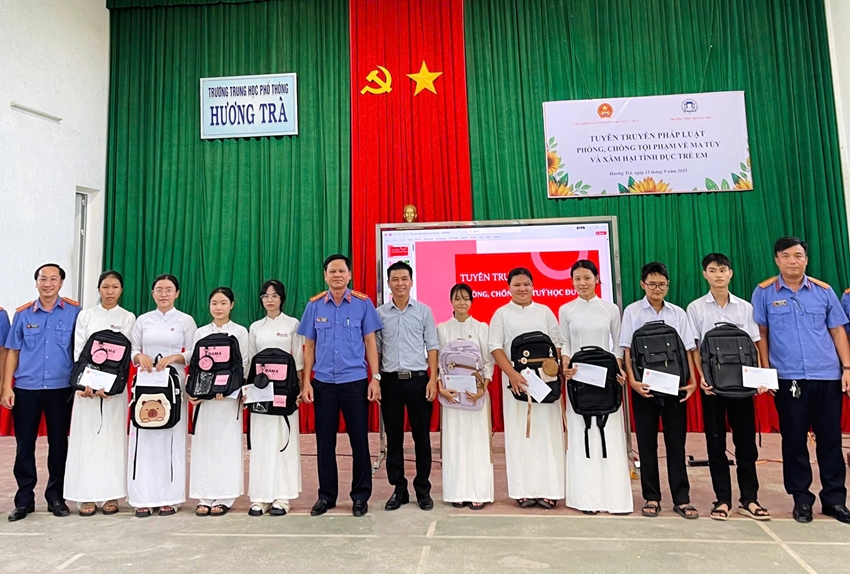 HNN.VN - Ngày 11/9, Viện Kiểm sát khu vực 3 - Huế phối hợp với Trường THPT Hương Trà tổ chức buổi tuyên truyền, phổ biến giáo dục pháp luật về ma túy và xâm hại tình dục trẻ em cho gần 850 học sinh.