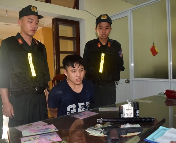 Nhật khai nhận, gói bột là ma túy tổng hợp dạng đá. Tiếp tục khám xét, lực lượng cảnh sát cơ động phát hiện trong túi xách của Nhật có 1 khẩu súng bắn đạn bi, 1 dùi cui điện, 2 bình xịt hơi cay, 1 gậy ba khúc.