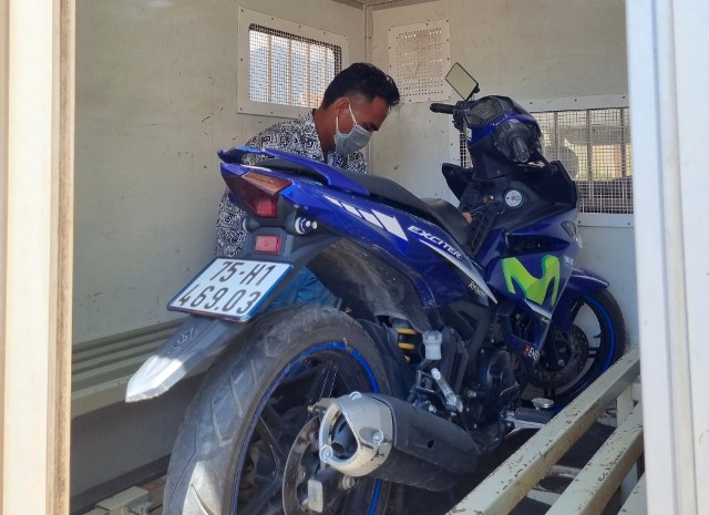 Anh Nguyễn Trường S điều khiển xe mô tô này chở em gái từ TP. Hồ Chí Minh về Huế để xin cách ly tập trung. Trong thời gian cách ly, anh S đã gửi xe lại tại thị trấn Lăng Cô.