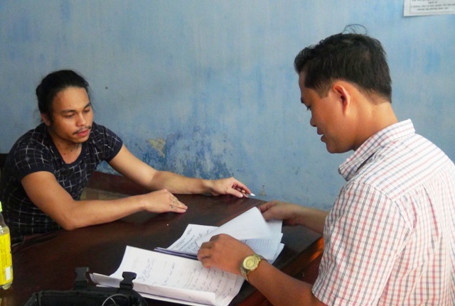 | Trương Quang Lượng (trái) tại cơ quan công an |