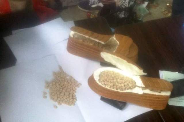 | Số ma túy tổng hợp cất giấu tinh vi trong hai chiếc dép. |