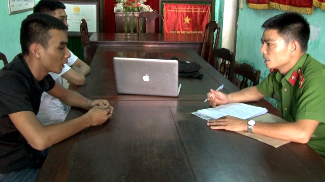 Công an phường Thuận Hòa lấy lời khai đối tượng Huy