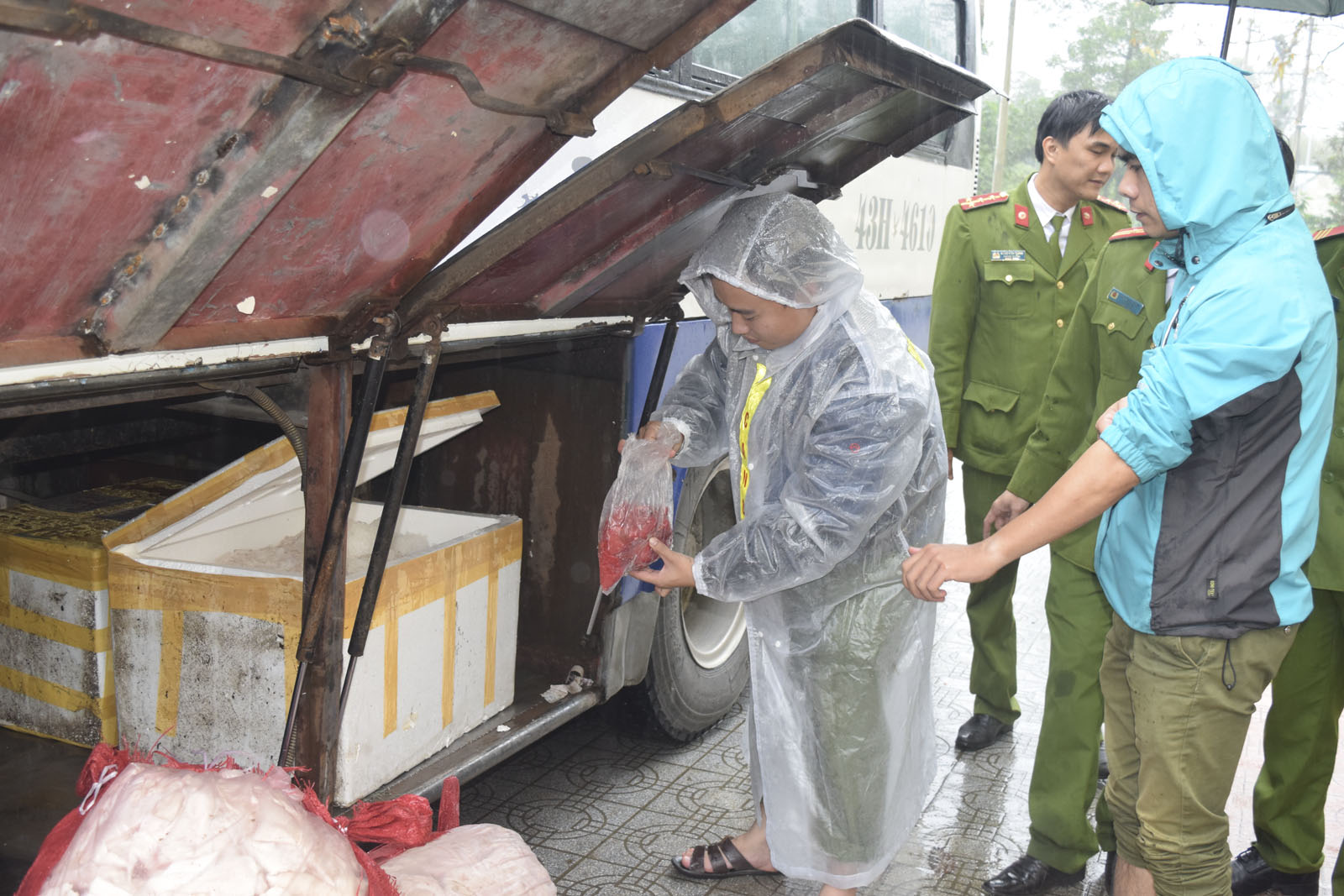 Trước đó, trong lúc đang làm nhiệm vụ, Đội cảnh sát kinh tế Công an thị xã Hương Thủy tiến hành kiểm tra xe khách BKS 43H-4610 do ông Huỳnh Xuân Tựu, (SN 1967, trú tại TP Đà Nẵng) điều khiển, phát hiện trên xe đang vận chuyển 2 tạ sản phẩm động vật là da heo không có giấy chứng nhận kiểm dịch, bốc mùi hôi thối.