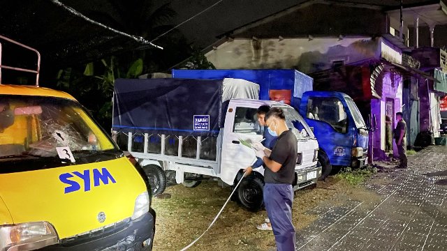 Hàng loạt xe ô tô tải bị Tuấn dùng búa đập vỡ kính chắn gió phía trước