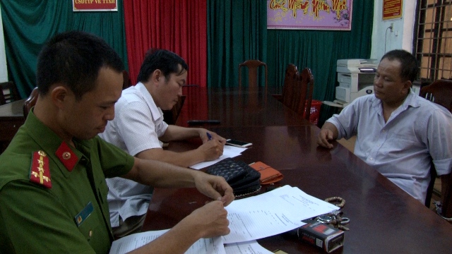 Đối tượng Thuận (ngoài cùng bên phải) khi bị bắt