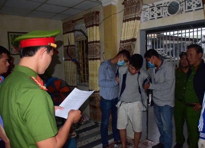 Lực lượng công an đọc lệnh bắt các đối tượng
