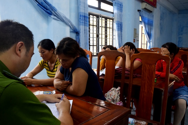 Qua nắm tình hình, Công an TX. Hương Trà kiểm tra đột xuất tại nhà bà Trần Thị Gái (55 tuổi), trú xã Hồng Tiến (TX. Hương Trà) và phát hiện, bắt quả tang nhóm đối tượng gồm: Hồng Thị Phúc (28 tuổi); Nguyễn Hưng Thau (49 tuổi); Nguyễn Hưng Bôn (20 tuổi); Đặng Trường (35 tuổi); Nguyễn Thị Thí (55 tuổi); Cao Thị Diện (29 tuổi); Lê Thị Hồi (32 tuổi), Đỗ Xuân Đức (23 tuổi) – tất cả cùng trú tại TX. Hương Trà đang tổ chức đánh bạc bằng hình thức chơi bài cào ăn tiền.