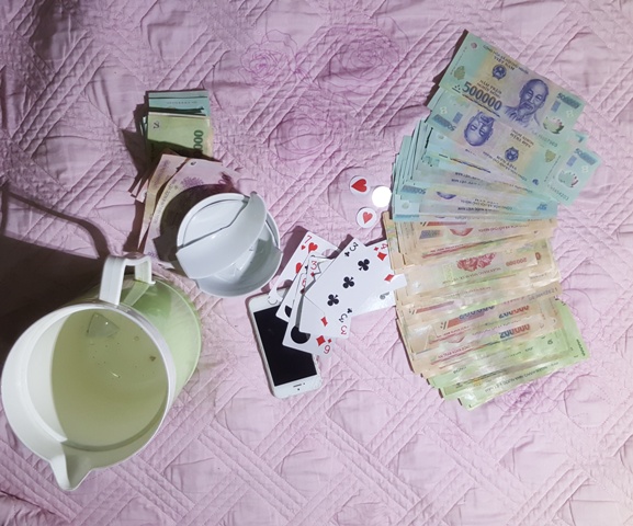 Khi lực lượng công an ập vào, 25 con bạc đang say sưa sạt phạt nhau, gồm 8 nữ và 17 nam. Tại đây, lực lượng Công an đã tạm giữ tang vật gồm hơn 214 triệu đồng, các dụng cụ và phương tiện dùng xóc dĩa và các tang vật liên quan khác.