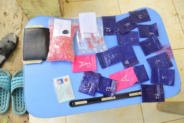 Tiến hành kiểm tra, tổ công tác phát hiện bên trong có chứa 16 túi nilong gồm khoảng gần 3.000 viên nén hình trụ màu hồng và màu xanh. Tú khai nhận, số viên nén màu hồng và xanh này là ma túy dạng hồng phiến.