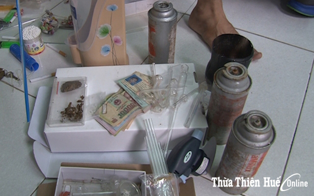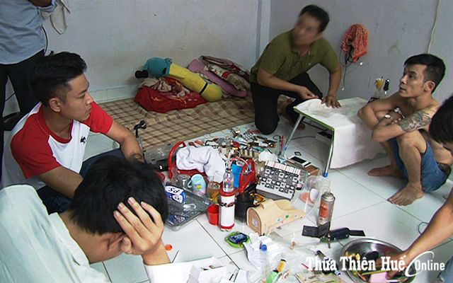 Trước đó, qua trinh sát nắm tình hình, chiều tối 4/10, lực lượng thuộc Đội Cảnh sát Điều tra tội phạm về ma túy Công an TP. Huế bất ngờ ập vào phòng trọ tại Kiệt 190 Điện Biên Phủ, phường Trường An, TP. Huế, bắt quả tang Nguyên, Đức, Hạ đang sử dụng trái phép chất ma túy.