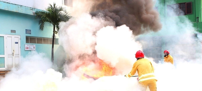 | Diễn tập công tác PCCC tại các cơ sở, đơn vị, doanh nghiệp. Ảnh minh họa |