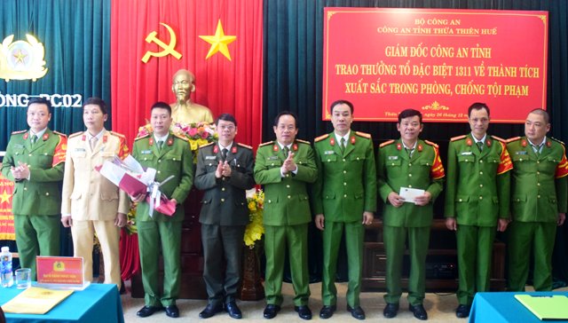 HNN.VN - Ngày 26/12, UVTV Tỉnh ủy, Giám đốc Công an tỉnh, Đại tá Nguyễn Thanh Tuấn đã trao thưởng, biểu dương tổ đặc biệt 1311 về thành tích xuất sắc trong phòng, chống tội phạm.