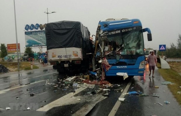 Hiện trường một vụ tai nạn giao thông nghiêm trọng giữa hai phương tiện trên tuyến đường Quốc lộ. (Ảnh: Đức Thọ/TTXVN)