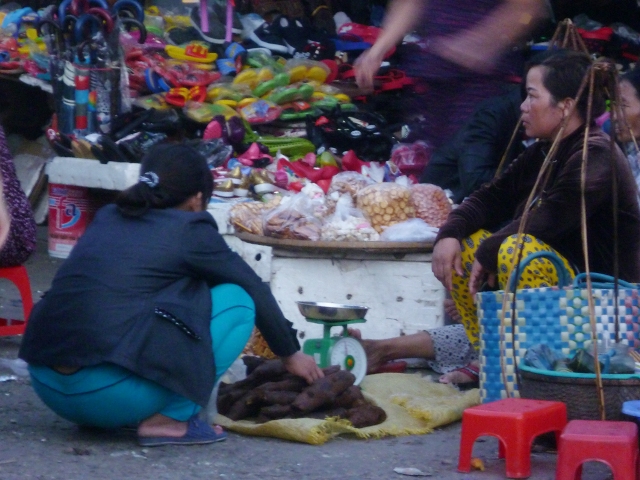 Sau mấy ngày liền quan sát, chúng tôi nhận thấy, khi có khách nào ghé vào hỏi thì ngay lập tức có một phụ nữ chừng 30 tuổi (người này cứ di chuyển quanh quẩn khu vực bà Hương bán hàng) cũng sà xuống, lựa hàng cho vào túi ni lông rồi đặt lên bàn cân. Vừa “mua”, chị này vừa quảng cáo với khách “Em mua đi, củ này uống tốt lắm, chị mới dùng nửa tháng mà thấy đỡ đau hẳn, đi lại thoải mái hơn nhiều” hoặc “chị này (tức bà Hương) thỉnh thoảng mới về đây bán, tranh thủ mua đi, hàng này hiếm lắm”. Khi khách đi khỏi, số “sâm cao ly” mà chị này vừa “mua” được chuyển trả lại cho người bán (bà Hương). Màn kịch đó cũng được một bà cụ chừng 70 tuổi bán bánh kẹo (ngồi cạnh bà Hương) lặp lại với những câu “mồi” như: “Cho mệ một cân đi, mua về phơi dự trữ, uống nhanh lành thật”, “May có hắn mệ mới đi tới được chợ đây con ơi”!