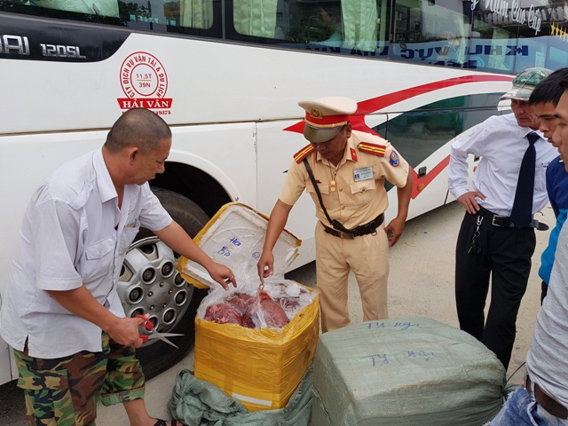 Lực lượng CSGT đã ra tín hiệu dừng sẽ để kiểm tra. Sau đó, phát hiện trên khoang hành lý 2 thùng xốp chứa bên trong nội tạng động vật có tổng trọng lượng hơn 2 tạ. Tài xế Nguyễn Hữu Hiệp không xuất trình được giấy tờ liên quan đến nguồn gốc xuất xứ số nội tạng động vật nói trên và thừa nhận chở thuê từ Đà Nẵng sang Viên Chăn-Lào tiêu thụ.
