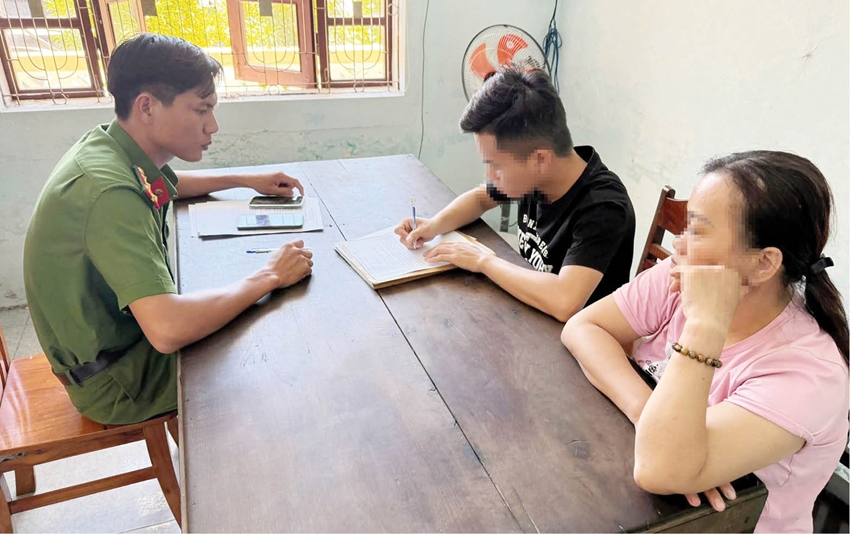 | Công an phường Dương Nỗ làm việc với anh V. và gia đình về vấn đề lừa lao động sang nước ngoài trái phép. Ảnh: Công an TP. Huế |