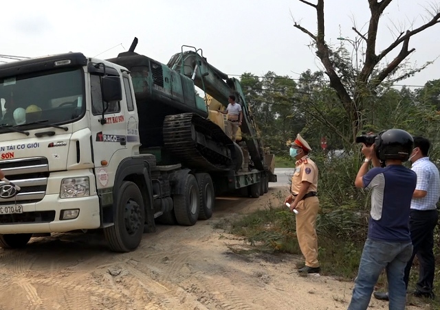 Tại thời điểm kiểm tra, phía trên ô tô đầu kéo này chở xe múc đang dừng xe trên tuyến QL 1A, huyện Phong Điền. Lúc này lái xe ô tô đầu kéo là Trần Đăng Huấn (35 tuổi), trú tại huyện Lệ Thủy (Quảng Bình) vắng mặt.