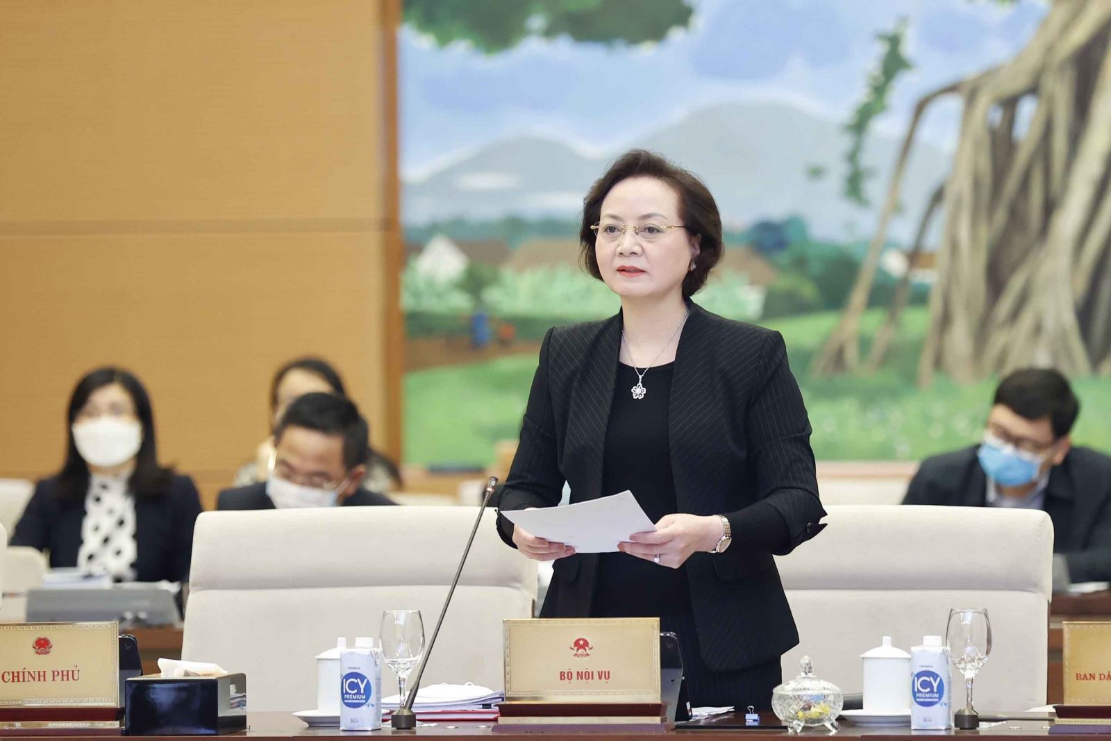 Bộ trưởng Bộ Nội vụ Phạm Thị Thanh Trà trình bày tờ trình tại Phiên họp. Ảnh: Doãn Tấn/TTXVN