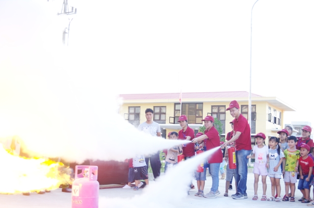 Trong trang phục lính cứu hỏa, các “chiến sĩ nhí” được trực tiếp tham gia hoạt động trò chơi vận động như: vượt chướng ngại vật liên quan đến đặc điểm, địa hình khi cháy, nổ xảy ra; di chuyển qua không gian hẹp; vận động vượt chướng ngại vật dùng bình chữa cháy xách tay (đối với học sinh lớn tuổi); đốt bình gas, khay xăng để giáo viên trung tâm cùng học sinh dùng bình chữa cháy xách tay dập tắt đám cháy.