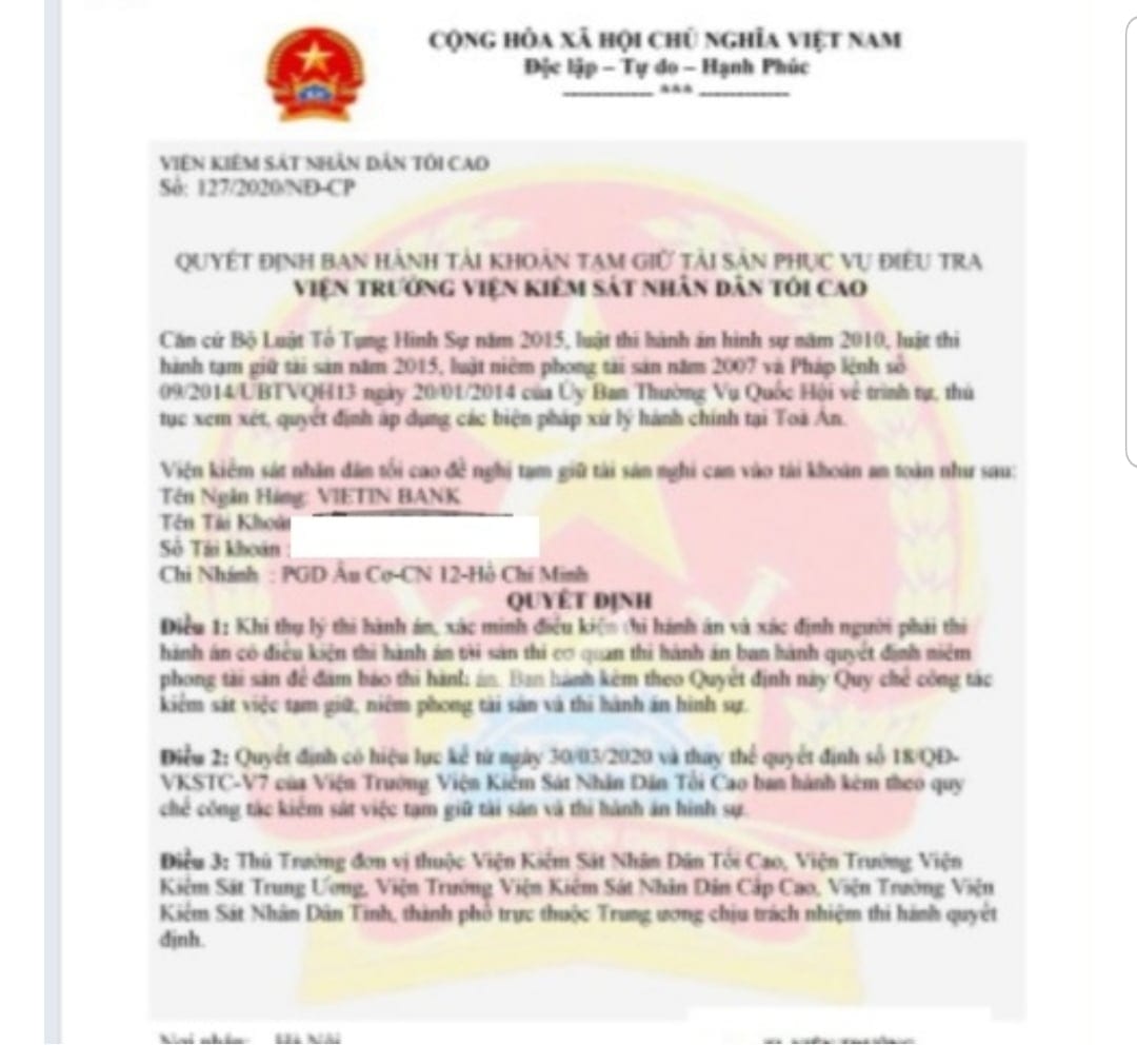 Hình ảnh đối tượng làm giả văn bản của Viện kiểm sát để đe dọa