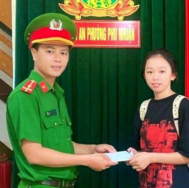 Bằng các biện pháp nghiệp vụ, ngày 2/4/2023, Công an phường Phú Nhuận đã phát hiện người nhặt được chiếc điện thoại của em H. Đồng thời, tiến hành thu giữ, làm các thủ tục cần thiết để trao trả chiếc điện thoại cho em Dương Thị T. H. theo quy định.