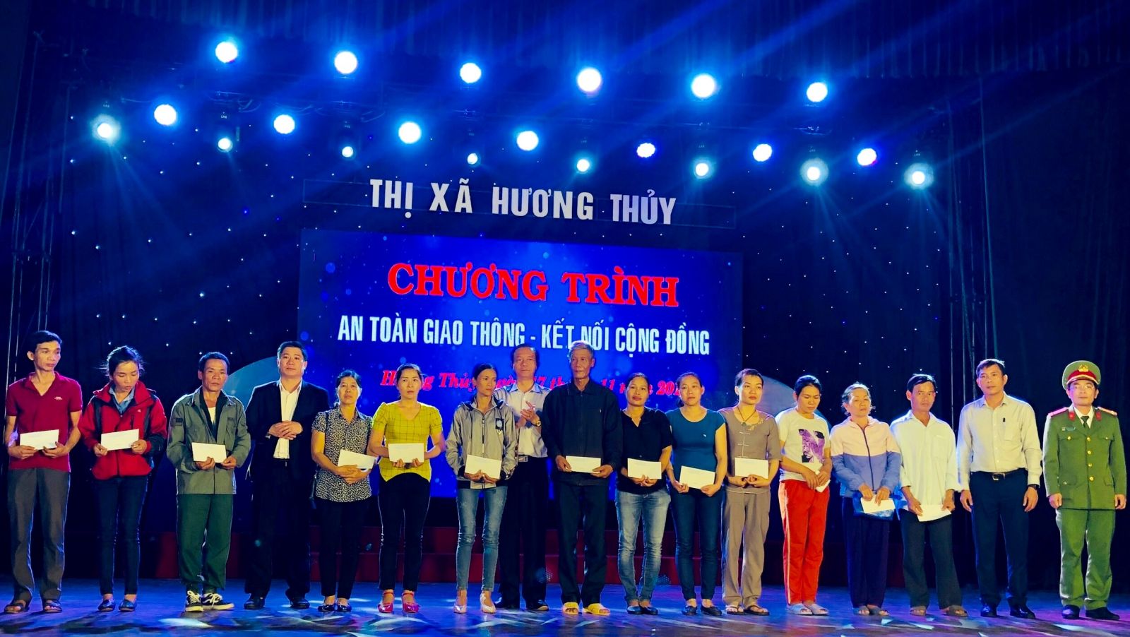 Dịp này, TX. Hương Thủy đã tặng 30 suất quà, mỗi suất 1 triệu đồng; Công an thị xã tặng 2 suất quà, mỗi suất 2 triệu đồng đến các nạn nhân, gia đình có người thân bị TNGT.