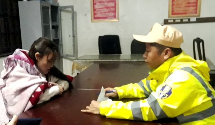 Cán bộ Đội Cảnh sát đường thủy hỏi thăm và động viên cố gái nhảy cầu