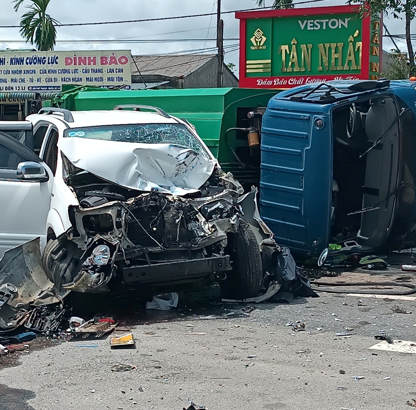 Tại hiện trường cho thấy, vụ tai nạn đã làm 1 xe ô tô chở rác BKS 75H – 00213 lật nghiêng nằm giữa đường QL 1; xe ô tô 7 chỗ BKS 92A – 00759 và ô tô tải BKS 20C – 16850 nát phần đầu.