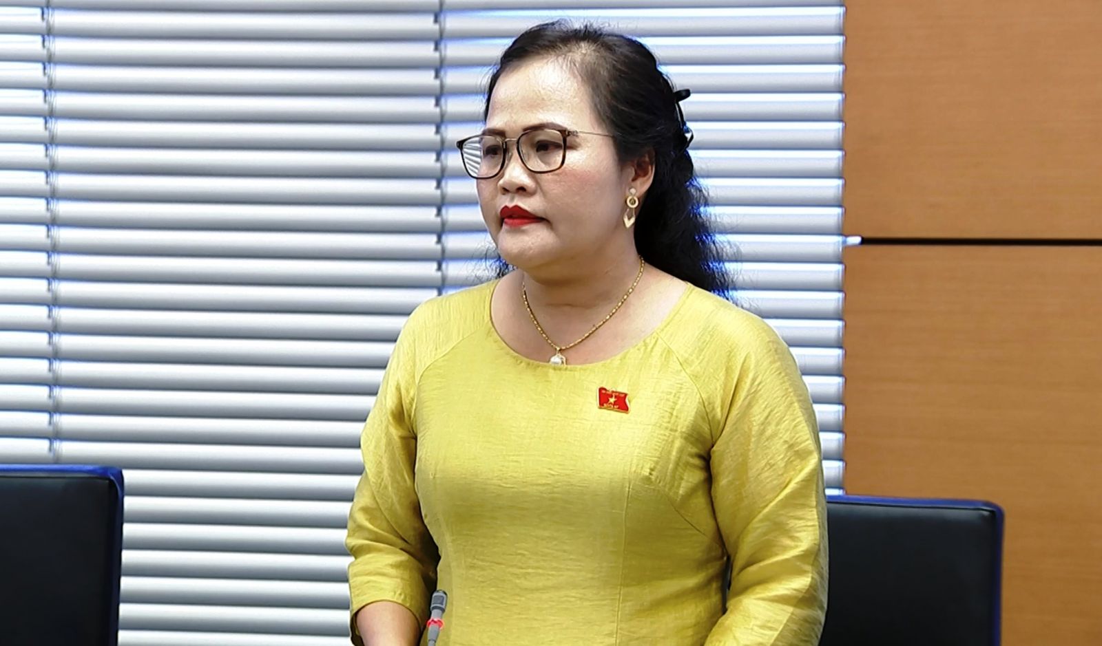 Phó Trưởng đoàn ĐBQH tỉnh Nguyễn Thị Sửu phát biểu ý kiến tại buổi thảo luận tổ. Ảnh: Đoàn ĐBQH tỉnh