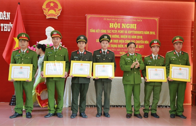 Dịp này, Công an tỉnh và UBND TX Hương Thủy đã trao giấy khen cho 11 tập thể và 9 cá nhân vì đã có thành tích xuất sắc trong công tác xây dựng phong trào toàn dân bảo vệ an ninh Tổ quốc.