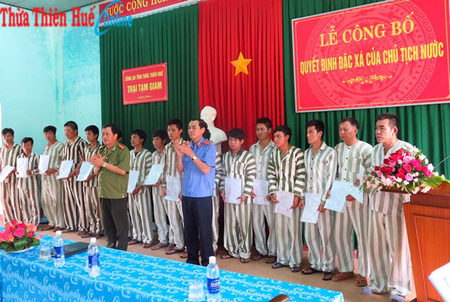 Dịp này, toàn tỉnh có 16 phạm nhân được hưởng đặc xá của Chủ tịch nước; trong đó, có 11 phạm nhân đang chấp hành án phạt tù tại Trại tạm giam Công an tỉnh; 3 phạm nhân đang ở Nhà tạm giữ TP Huế, 1 ở Quảng Điền và 1 ở Phú Lộc. Người có mức giảm cao nhất là 20 tháng, thấp nhất là 40 ngày.