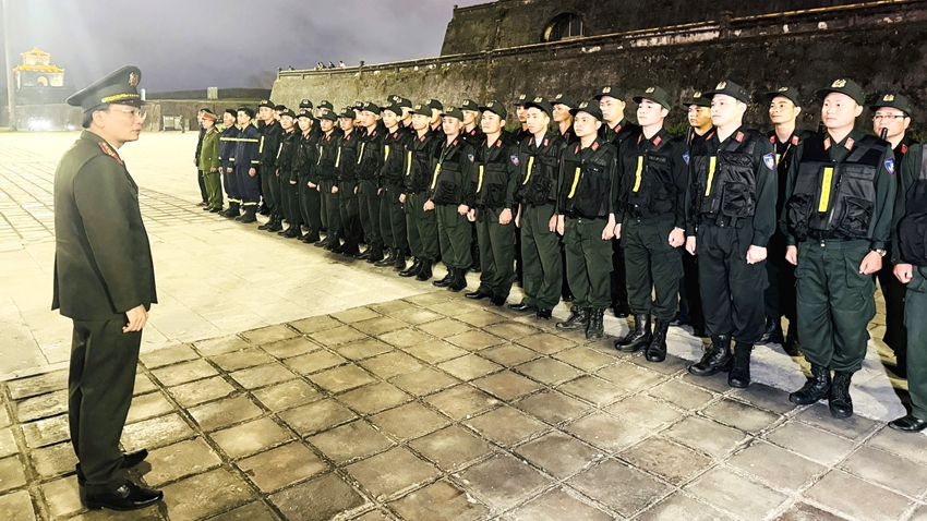 | Lãnh đạo Công an TP. Huế kiểm tra và động viên lực lượng Cảnh sát cơ động làm nhiệm vụ trong đêm Giao thừa |
