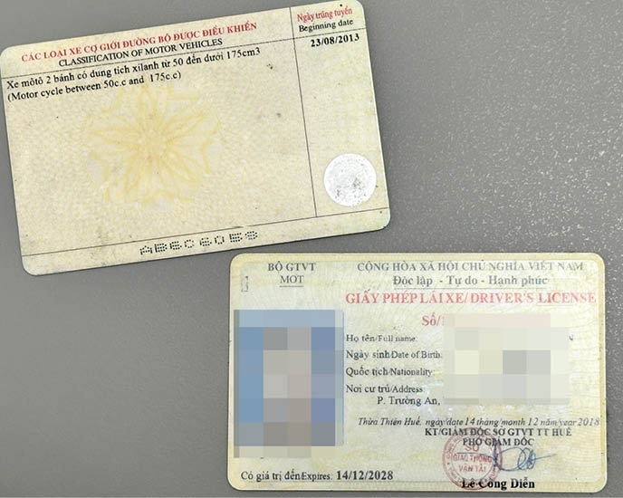 Với thủ đoạn trên, Chín và Minh đã đặt làm giả nhiều GPLX cho nhiều người dân sống trên phường Hương Vinh và các địa bàn khác thuộc TP. Huế.