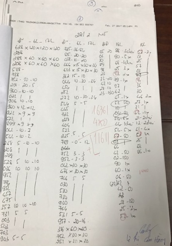 Tại các địa điểm này, qua khám xét, lực lượng công an bắt quả tang 15 người (chủ yếu là phụ nữ, chỉ có 1 người đàn ông) đang tổ chức ghi đề, thu giữ hàng nghìn tờ tịch hiển thị số liệu ghi đề, trên 500 triệu đồng, 18 máy fax, 20 điện thoại di động, 6 máy tính, 2 máy tính xách tay, 2 máy in cùng nhiều tài liệu ghi đề.