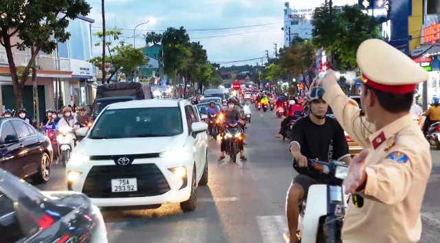 CSGT – Trật tự Công an TP. Huế điều tiết giao thông, hạn chế tình trạng kẹt xe, ùn tắc giao thông dịp tết