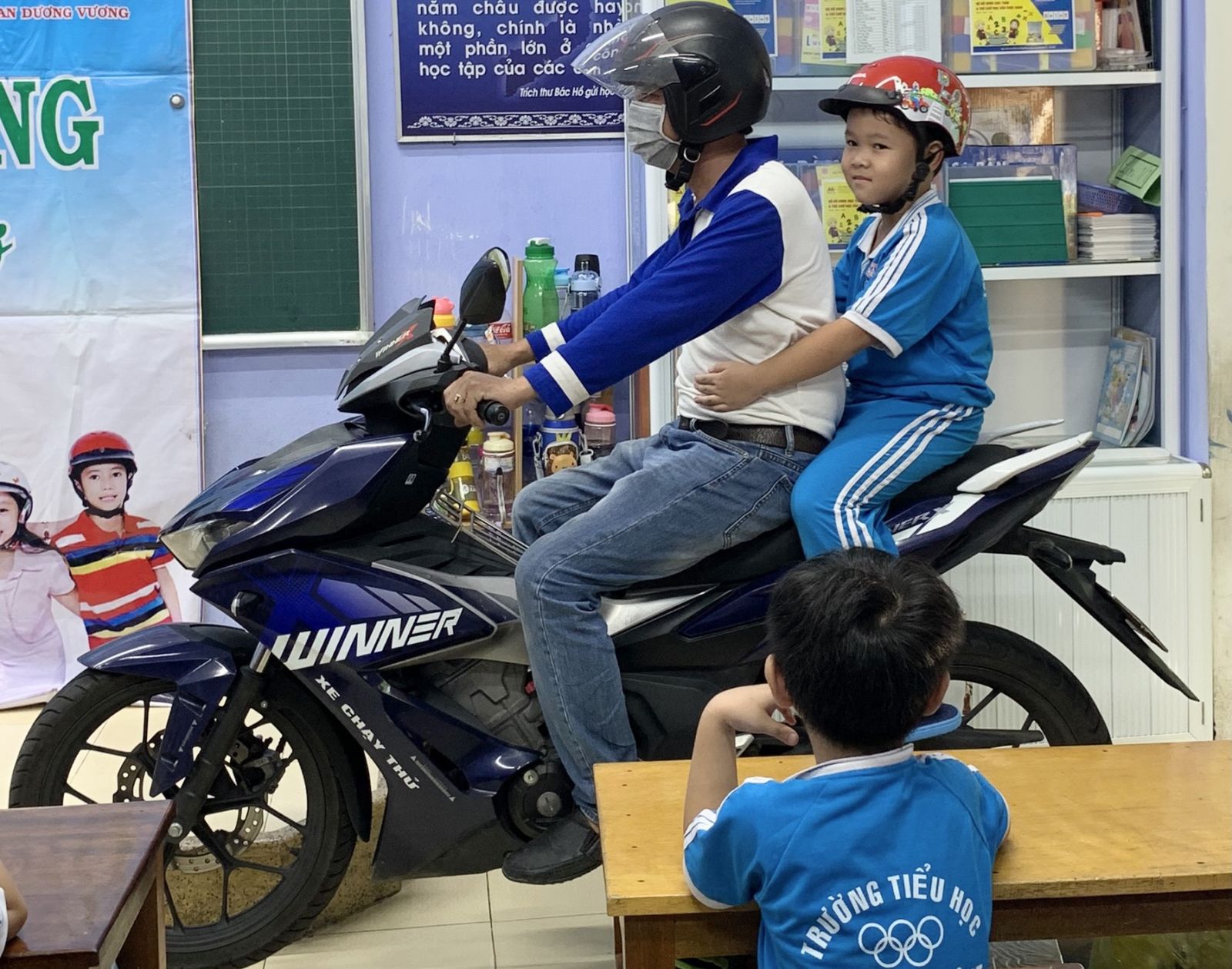 Hướng dẫn đội mũ bảo hiểm đúng cách cho các em học sinh