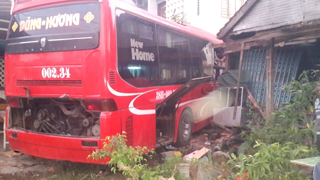 HNN.VN - Khoảng 4h sáng 26/1, tại phường Phú Bài (thị xã Hương Thủy), một chiếc xe khách giường nằm 45 chỗ đã đâm thẳng vào nhà dân làm tài xế và phụ xe bị thương nặng.