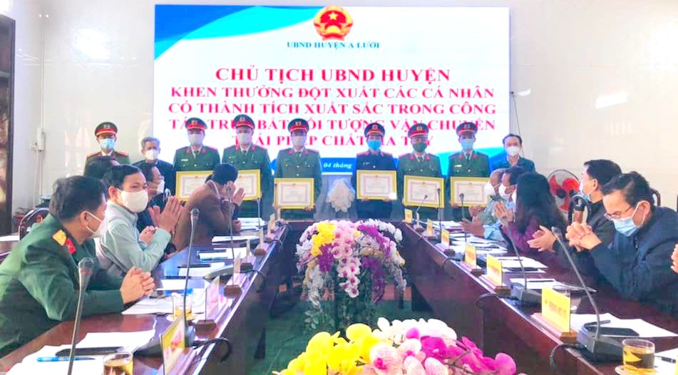 Trước thành tích trên, Chủ tịch UBND huyện A Lưới Nguyễn Mạnh Hùng đã trao quyết định khen thưởng 7 cá nhân có thành tích xuất sắc trong công tác truy bắt đối tượng vận chuyển trái phép chất ma túy; biểu dương những thành tích mà Công an huyện và các cơ quan chuyên môn đã đạt được trong công tác đấu tranh phòng, chống tội phạm thời gian qua. Đồng thời, mong muốn trong thời gian tới, Công an huyện tiếp tục đẩy mạnh tấn công, trấn áp tội phạm, góp phần bảo đảm an ninh chính trị, trật tự an toàn xã hội vì cuộc sống bình yên, hạnh phúc của Nhân dân.