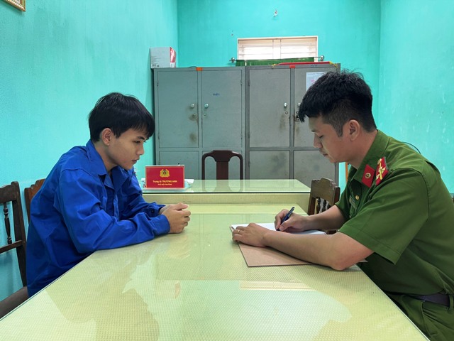 Công an huyện Quảng Điền làm việc với đối tượng trộm Lê Ngọc Đức