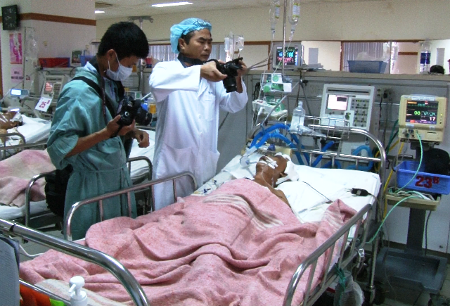 | Ông Hà đang rất nguy kịch được chăm sóc đặc biệt tại Bệnh viện Trung ương Huế |