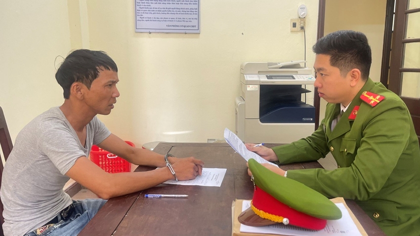| Đối tượng Phan Văn Thanh khai nhận hành vi phạm tội tại cơ quan công an. Ảnh: T.H |