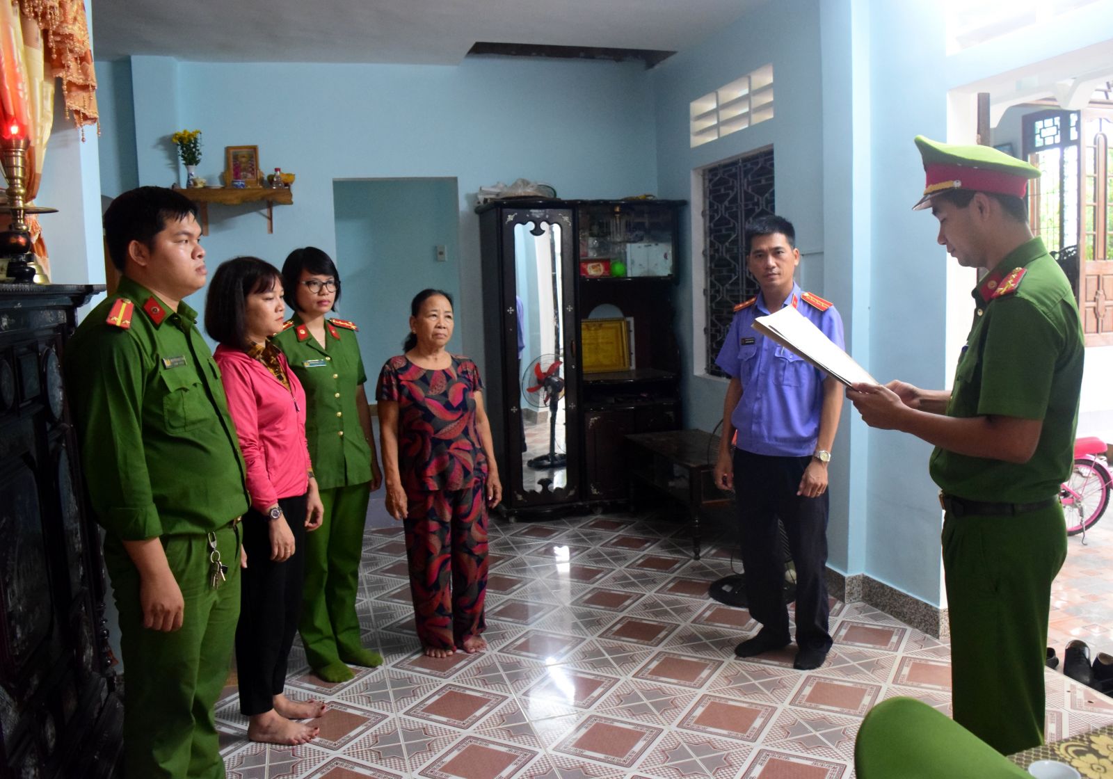 Công an đọc lệnh khởi tố bị can và ra lệnh cấm đi khỏi nơi cư trú đối với Trần Thị Thu