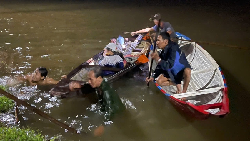 Cùng lúc này, Anh Đặng Ngọc Quang, một người dân tình cờ có mặt tại hiện trường cũng đã tích cực tham gia hỗ trợ công tác cứu nạn điều kiện trời tối, nước dâng cao, chảy xiết. Sau hơn 30 phút triển khai cứu hộ, lực lượng Công an huyện cùng người dân đã ứng cứu thành công gia đình anh Thảo và đưa đến Trung tâm Y tế huyện Quảng Điền để theo dõi.