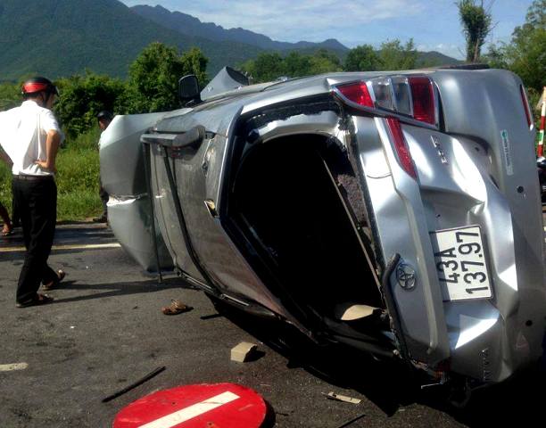 Theo đó, khoảng 8 giờ 20 phút cùng ngày, xe ô tô 7 chỗ BKS 43A-173.97 lưu thông trên QL 1A qua địa phận huyện Phú Lộc theo hướng Đà Nẵng- Huế. Khi xe chạy đến địa điểm trên thì bị mất lái và đâm rất mạnh vào dải phân cách và lật nghiêng giữa đường.