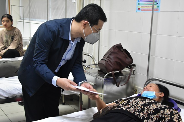 Phó Chủ tịch UBND tỉnh Hoàng Hải Minh động viên nạn nhân vụ tai nạn đang điều trị tại Bệnh viện Trung ương Huế